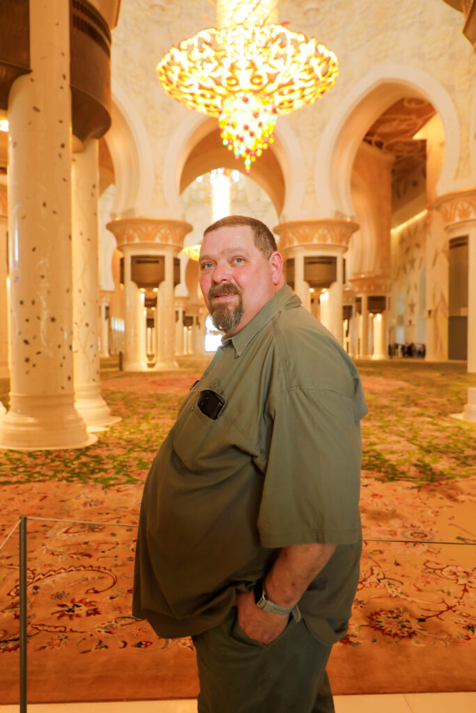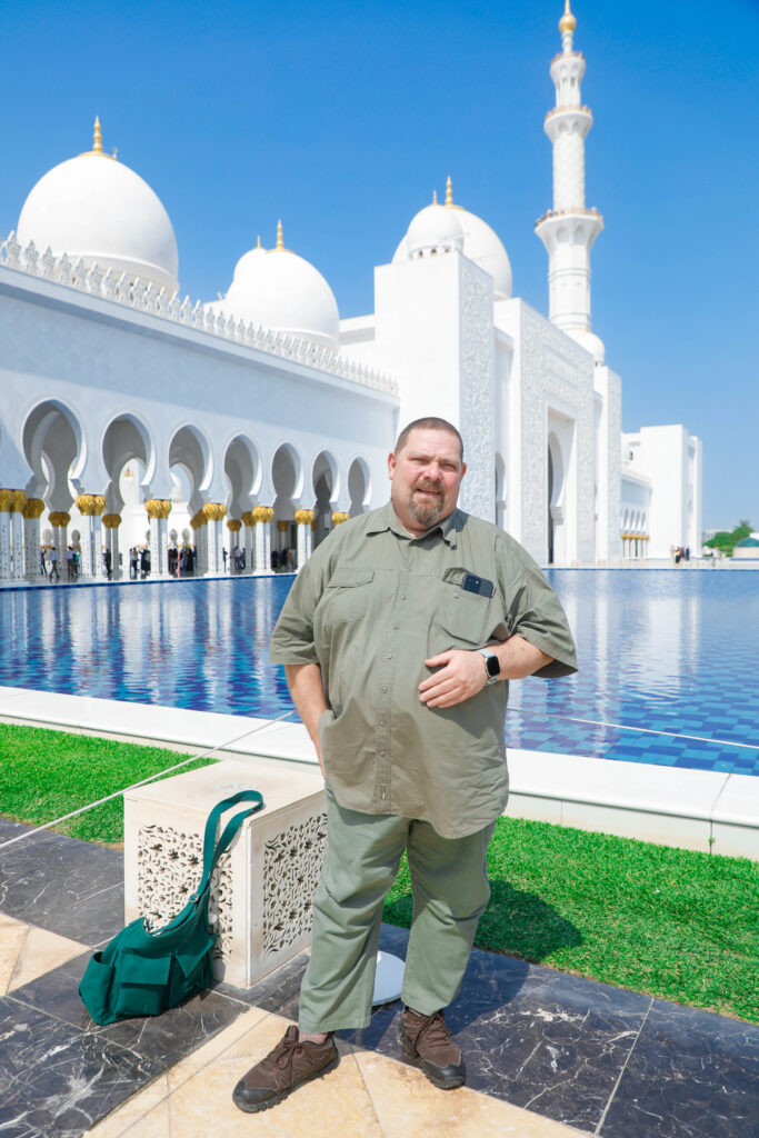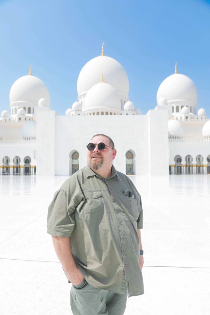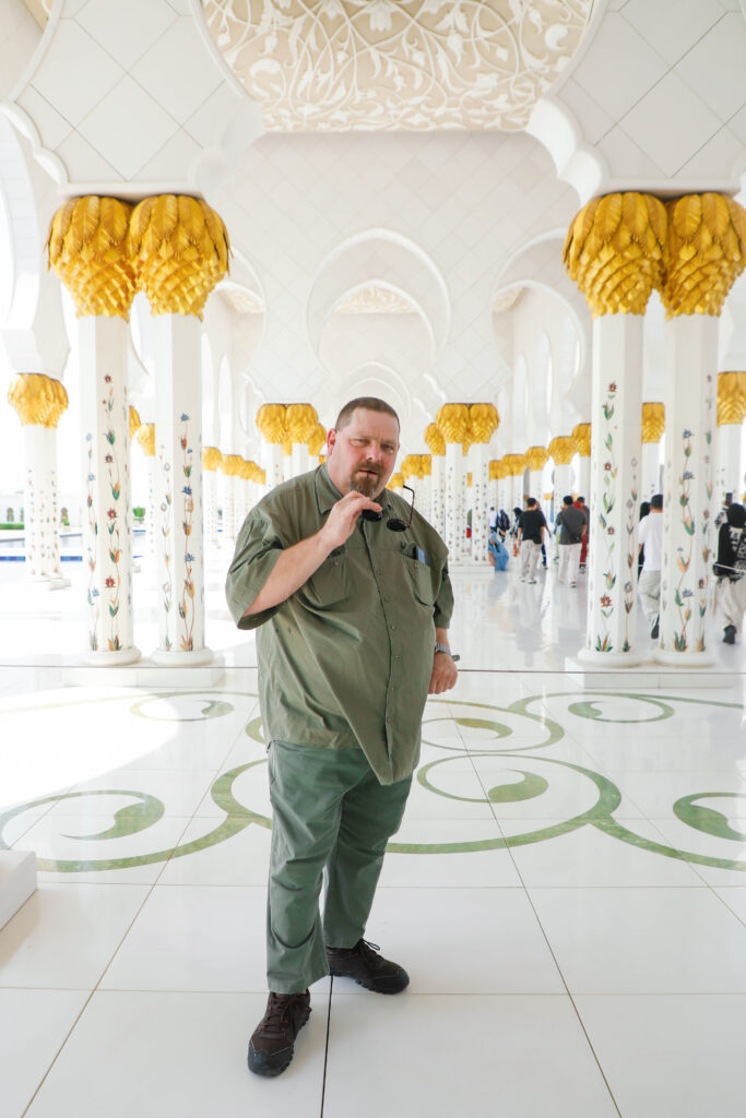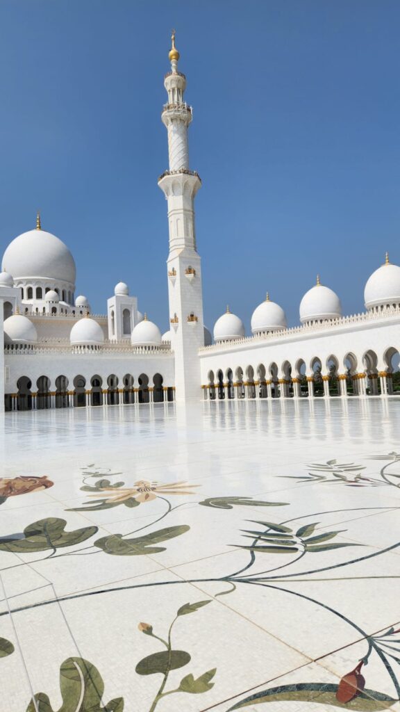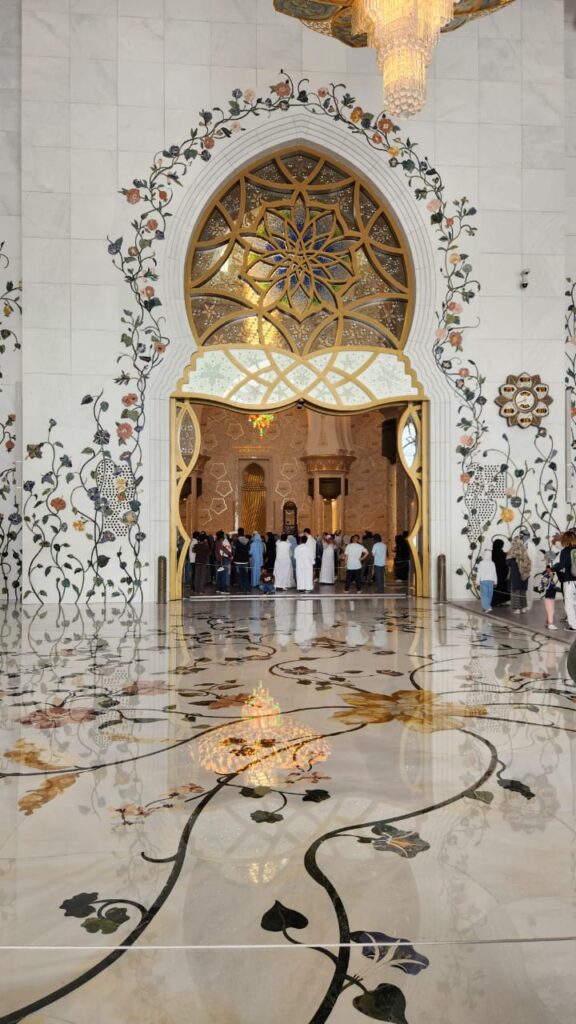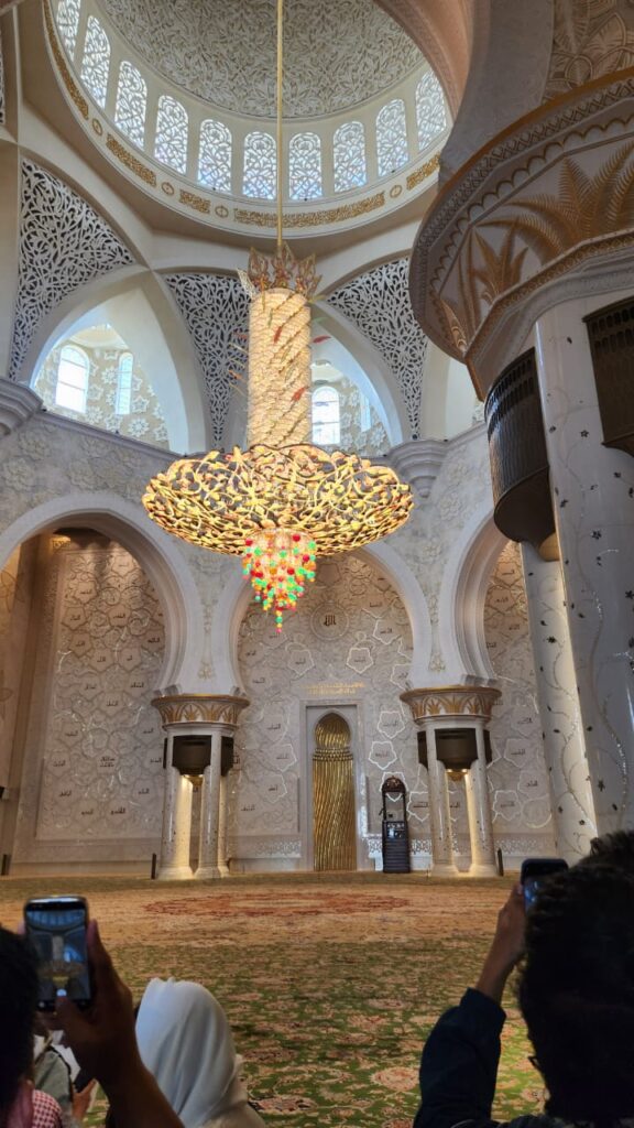 The highlight of the week was a visit to the Sheikh Zayed Grand Mosque — and what an experience that was. It’s one of those places that instantly lowers your heart rate and raises your sense of awe. The marble glows, the chandeliers sparkle, and you start whispering without even meaning to. It’s beauty and calm all in one — the kind of architecture that politely tells you to get your life together.